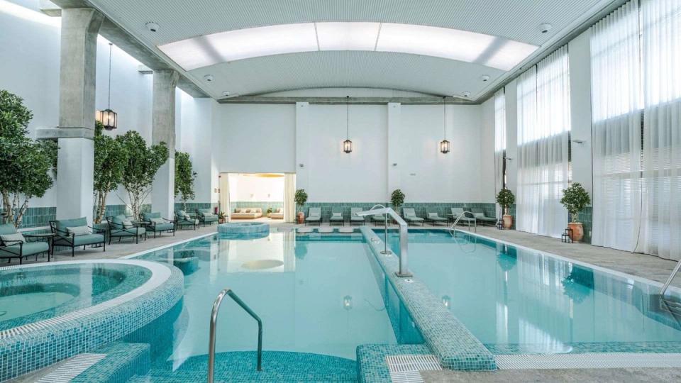 Six treatment rooms including one double suite accompany an extensive thermal spa area centred around two impressive pools. The 19 square-metre indoor dynamic pool includes two pressure jets, a hydrotherapy waterfall and a counter-current system designed to improve circulation and ease muscular tension. A second 39.9 square-metre swimming pool sits at ambient temperature, ideal for gentle exercise and relaxation.